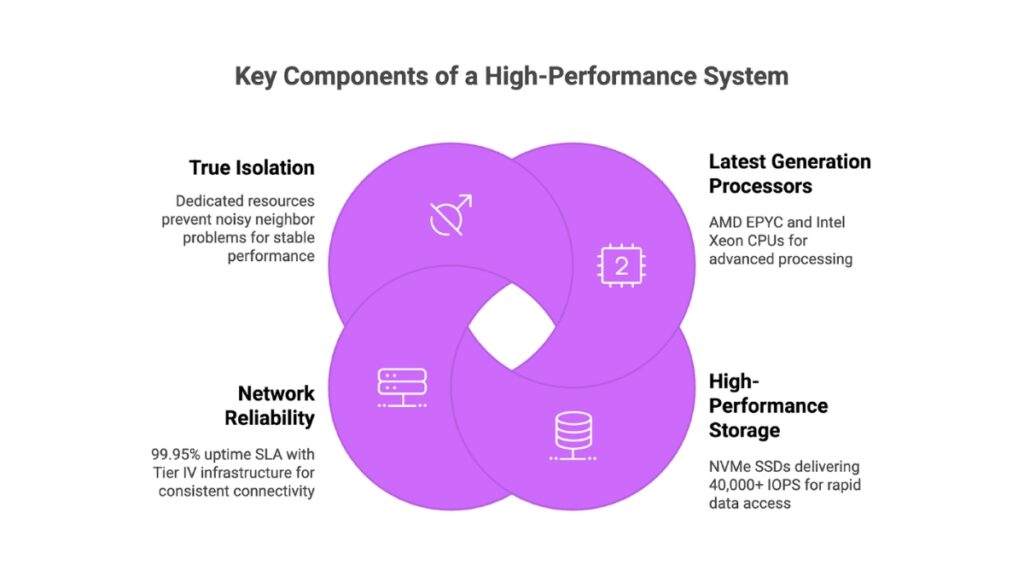 CloudPe’s performance architecture is built around a foundation of modern, high-performance hardware. This includes latest-gen processors, with options for GPU acceleration and bare metal access for ultimate performance.